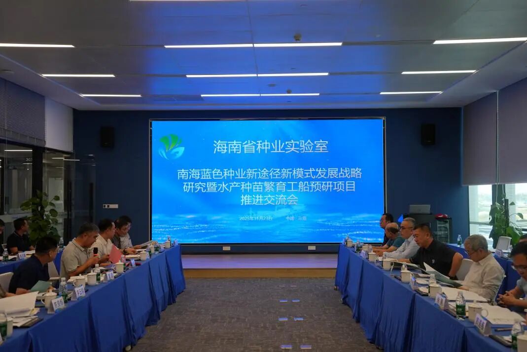 2025年11月23日,在海南省科学技术厅指导下,由海南省种业实验室和中国海洋大学三亚海洋研究院联合主办的“南海蓝色种业新途径新模式发展战略研究”和“水产种苗繁育工船预研”项目推进交流会在中国海洋大学三亚海洋研究院召开。海南省科学技术厅、海南省农业农村厅、崖州湾科技城管理局领导莅临会议指导。评审专家组包括浙江万里学院教授林志华、辽宁省海洋水产科学研究院研究员周遵春、上海海洋大学教授陈良标、厦门大学教授徐鹏、海南省种业实验室教授张全启、中国海洋大学教授王师和中国海洋大学教授董波。中国工程院包振民院士、中国工程院陈松林院士以及中国海洋大学三亚海洋研究院、华东理工大学、海南大学、海南省水产技术推广站、青岛蓝色粮仓海洋渔业发展有限公司和天海融合防务装备技术股份有限公司等项目参与单位的代表出席会议。