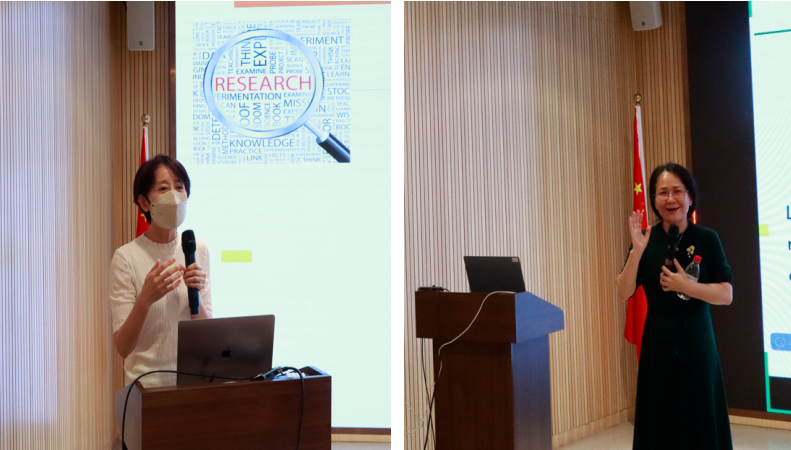 2.陈雪梅院士(左)和陈月琴教授(右)作学术报告