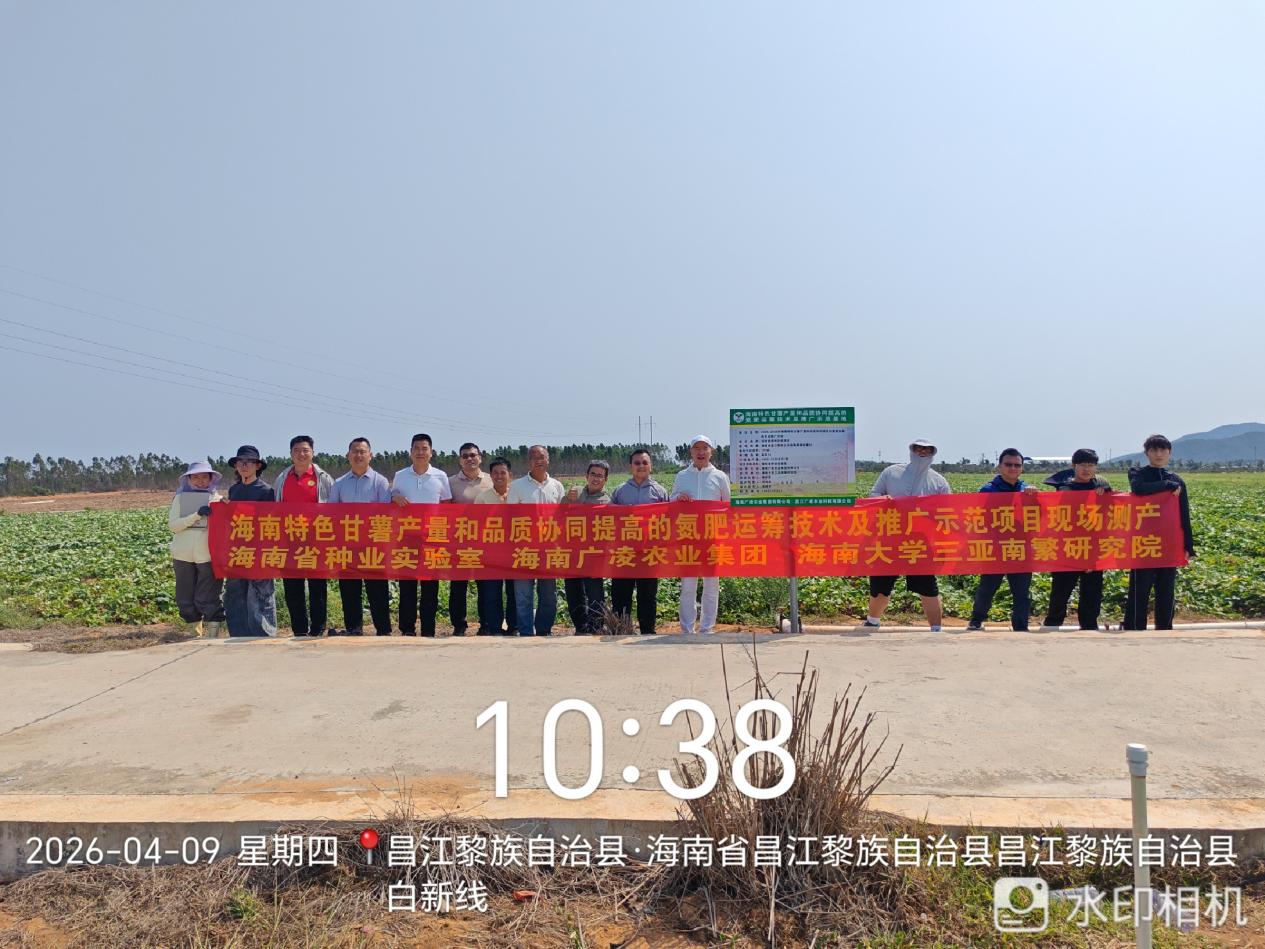2026年4月9日,由海南省种业实验室推动的成果转化项目——“海南特色甘薯产量与品质协同提升的氮肥运筹技术及推广示范”现场测产验收会在昌江黎族自治县海尾镇打显村示范基地顺利举行。该项目由海南广凌农业集团有限公司熊怀阳博士牵头,海南大学热带农林学院三亚南繁研究院司成成副教授担任技术负责人。经过专家组系统测产与综合评估,项目在甘薯产量与品质协同提升方面取得显著进展。